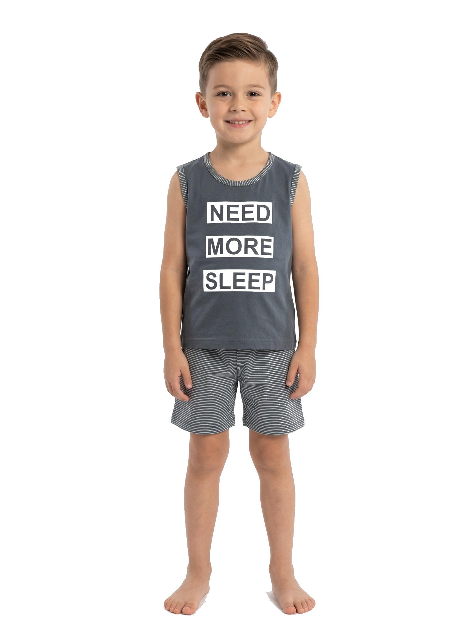 O Pijama Infantil Need More Sleep é aquele conjuntinho perfeito para noites confortáveis com um toque moderno e divertido. Com blusa regata na cor mescla escura e estampa frontal “Need More Sleep”, ele traz estilo até na hora de dormir.